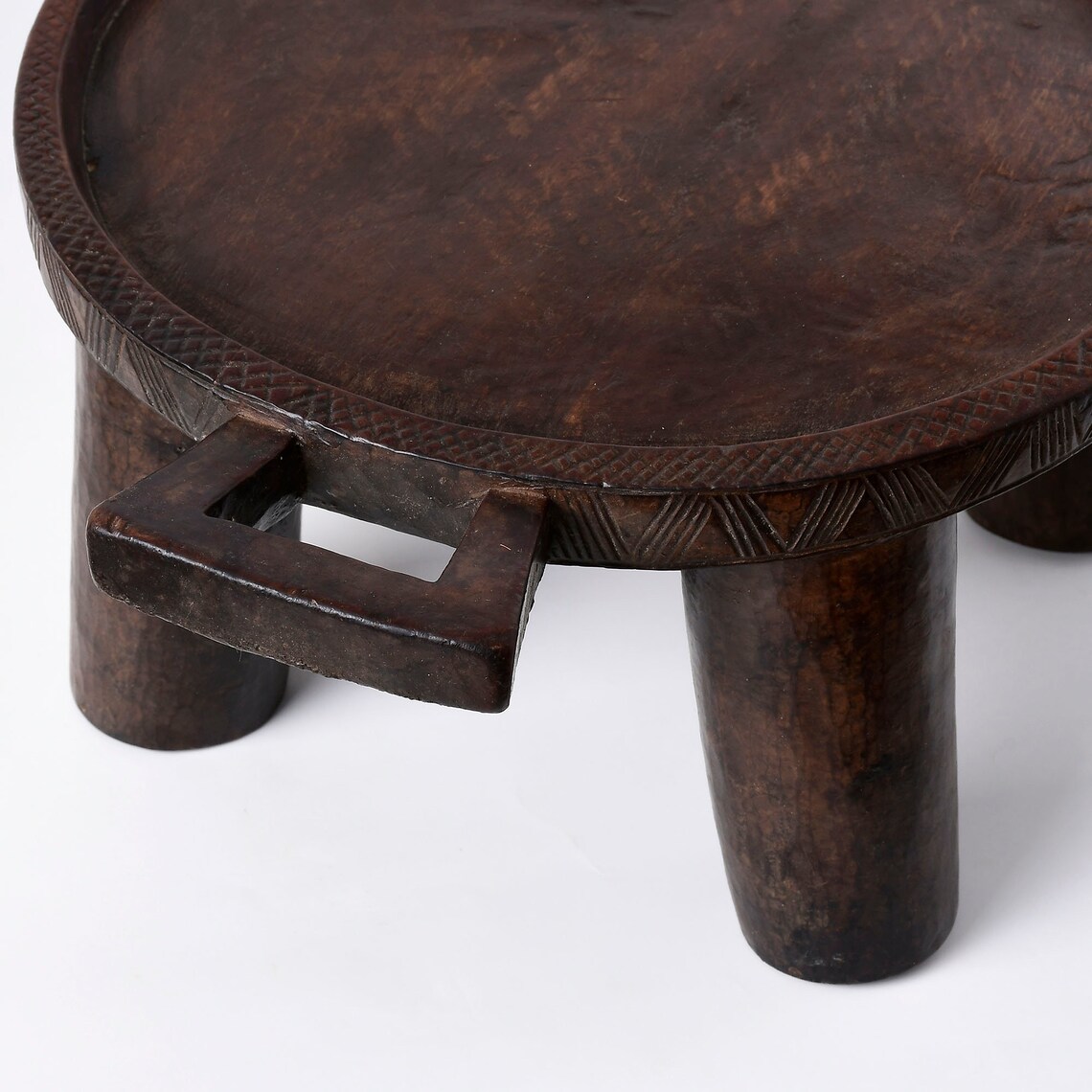A handmade carved coffee table that is ideal for various spaces around the house.